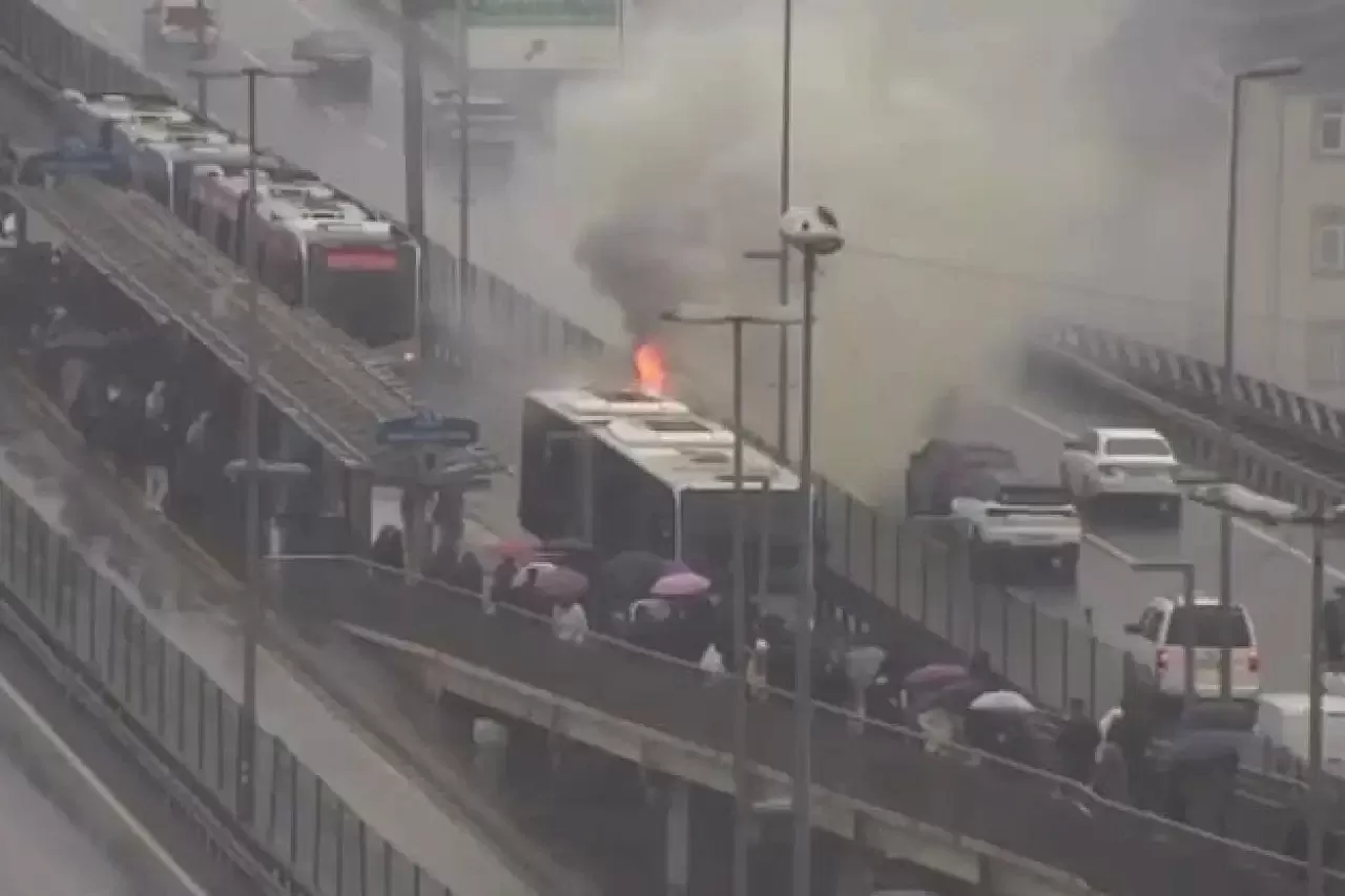 İstanbul’da toplu ulaşım hattında ilerleyen bir metrobüste motor bölümünden yükselen dumanlar kısa sürede yangına dönüştü. Sürücünün aracı durdurmasının ardından yolcular güvenli şekilde tahliye edildi. İtfaiye ekipleri yangını kontrol altına alırken, olay ulaşımda geçici aksamalara neden oldu. İlk belirlemelere göre teknik arızanın yangına yol açmış olabileceği değerlendiriliyor.