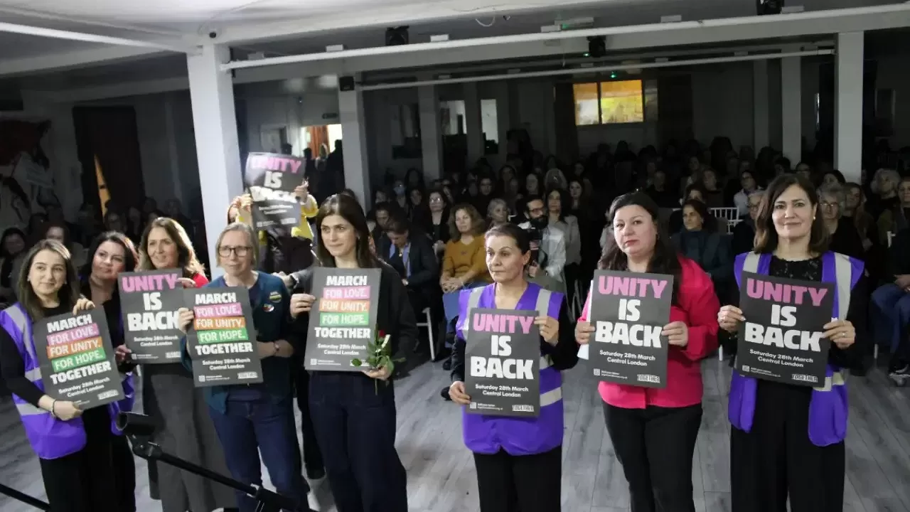 İngiltere’nin başkenti Londra’da 8 Mart Dünya Kadınlar Günü dolayısıyla çeşitli sivil toplum kuruluşları ve sendikaların katılımıyla bir dayanışma etkinliği düzenlendi.