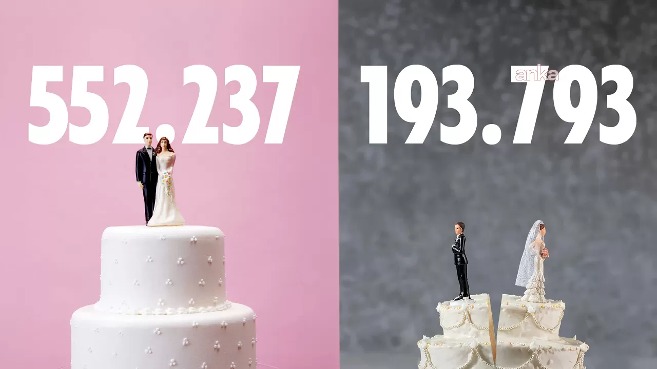 Türkiye İstatistik Kurumu (TÜİK), 2025 yılı evlenme ve boşanma istatistiklerini yayımladı. Buna göre geçen yıl 552 bin 237 çift evlenirken, 193 bin 793 çift boşandı. Bu veriler, 2024 yılı ile karşılaştırıldığında evliliklerde azalma ve boşanmalarda artış olduğunu ortaya koydu.